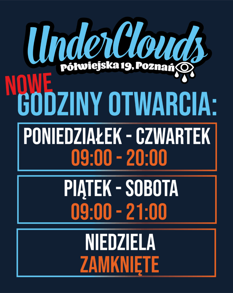 Nowe godziny otwarcia sklepu Under Clouds przy ul. Półwiejskiej 19 w Poznaniu